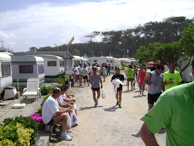 molhada, promessa abençoada! Após os primeiros 3 km, começa a subir acentuadamente, para depois ser um pouco mais suave, sem nunca deixar de subir, aumentando o grau de dificuldade à medida que os quilómetros avançam e se fazem sentir nas pernas. As promessas exigem sacrifício, mas estes briosos atletas não são de esmorecer e lá foram chegando cada um ao seu ritmo ao local de destino.Chegados ao Sameiro, um manto de nevoeiro cobria o santuário tornando-o imperceptível aos olhos de cada um. Noutros tempos todos esperaram por um rei numa manhã de nevoeiro, mas esse tal, de nome Sebastião nunca fez a sua aparição. O 'nosso rei', o Afonso que até é o primeiro de Portugal, surpreendeu-nos por entre a neblina, como que agradecendo a nossa dedicação. Estamos certos que o 'regresso do rei' será coroado de êxito e que também os 'atletas do parque' terão a sua bênção por todas as terras onde correrem. No próximo domingo, estaremos em Matosinhos para correr a meia maratona, amparados pelas nossas pernas e com a graça do rei!